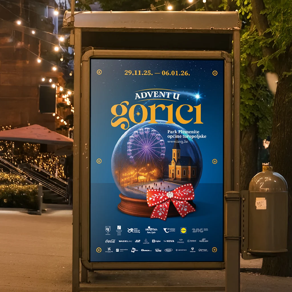 Vizuali za billboarde i citylighte bili su zamišljeni kao dio grada, ne samo kao reklama. Dok prolaziš ulicom, željeli smo da te podsjeti da je Advent tu, da se nešto događa i da si pozvan stati, doći i biti dio priče. Dizajn je morao funkcionirati u pokretu, ali i u trenutku kad se netko odluči vratiti navečer s obitelji ili prijateljima.